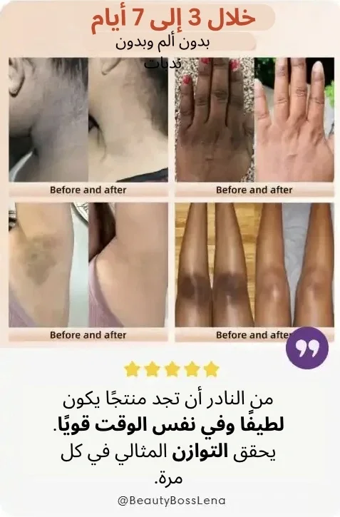 كل هذا بدون ألم، بدون تهيّج — بس بشرة أنعم، أفتح، وأنظف يوم بعد يوم ✨